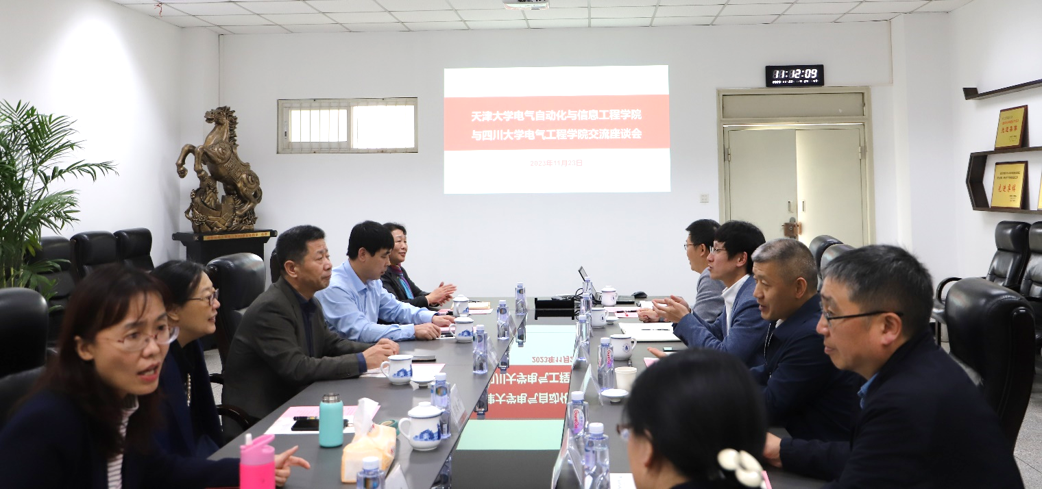 11月23日上午,天津大学电气自动化与信息工程学院党委书记李继平,副院长张涛,党委组织员张秀娟,院长助理姜秀莲和综合办副主任刘娟等一行到访我院调研交流。我院党委书记赵昱辉,院长肖先勇,副院长周步祥、副院长李成鑫等参加座谈会。