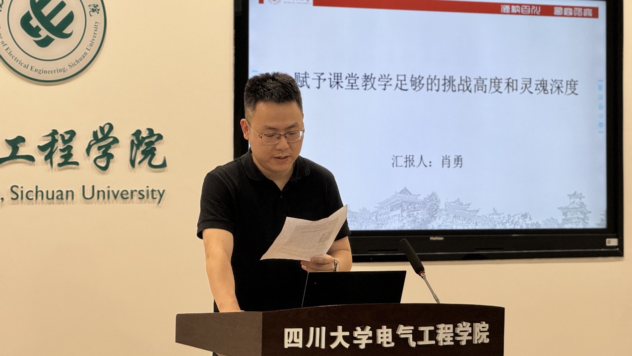 近日,太阳成集团tyc122cc电气工程系于望江校区基础教学楼报告厅举办了以“赋予课堂教学足够的挑战高度和灵魂深度”为主题的工科教学课程思政研究与实践交流活动,主讲人为电气工程学院专业实验中心主任肖勇老师。本次活动由王杨老师主持,参与人员包括学院院长肖先勇,副院长李长松以及近年新入职的青年教师。