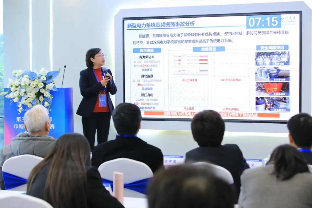 本次大赛我院王渝红教授的参赛项目名称为《广域高比例新能源电力系统宽频振荡智能风险辨识及定位系统》。项目针对高比例新能源与电力系统间宽频振荡的检测、分析及防控问题,融合人工智能技术与工程机理手段,提出了广域系统宽频振荡智能监测数据修复和量测装置配置优化方法,构建了融合物理机制的宽频振荡智能风险量化评估架构,设计了基于神经压缩感知技术的扰动源分层定位系统。