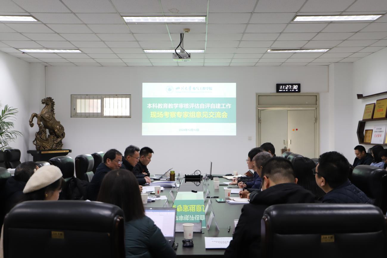 为扎实推进学校自评自建工作,迎接教育部新一轮本科教育教学审核评估,12月13日上午,学校审核评估自评自建工作工科一组专家对电气工程学院进行了现场考察。专家组由校督导委主任、材料科学与工程学院朱建国任组长,成员由建筑与环境学院副院长兰中仁,化学工程学院副院长唐盛伟,校督导、华西公共卫生学院曾红燕,校督导、空天科学与工程学院周青华组成,材料科学与工程学院刘丽娟担任秘书。教务处副处长赵行,学院党委书记赵昱辉、院长肖先勇等学院党政领导,学院督导组专家,各系中心党政负责人,教师代表参加会议。会议由专家组组长朱建国主持。