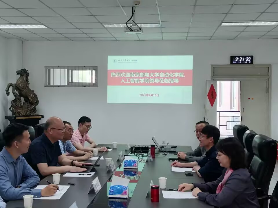 2025年4月18日上午,南京邮电大学自动化学院、人工智能学院副院长王强一行6人莅临我院开展调研交流。双方围绕电气工程及其自动化专业建设、人才培养方案优化及教学改革等议题展开深入探讨。学院党委书记赵昱辉、副院长李长松等4人参加座谈。