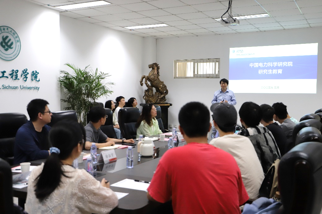 5月23日上午,中国电力科学研究院研究生院主任严剑峰、副主任马晓静一行到访学院,在基础教学楼会议室开展招生宣讲,并就进一步加强双方合作进行了深入交流。学院党委书记赵昱辉,副院长李长松、汪颖,教授委员会副主任刘天琪等参加交流座谈。