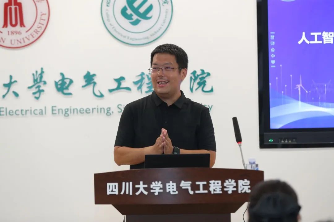 专题报告环节,电子科技大学机械与电气工程学院胡维昊教授作题为人工智能技术在清洁能源电力系统中的若干应用探讨的报告。他介绍了人工智能技术近十年来的里程碑节点,深入分析了人工智能在电力电子变换器效益优化、高比例光伏配电网电压控制、水电富集电网低频/超低频振荡控制中的应用,并对面向清洁能源电力系统人工智能技术的机遇与挑战进行了展望。