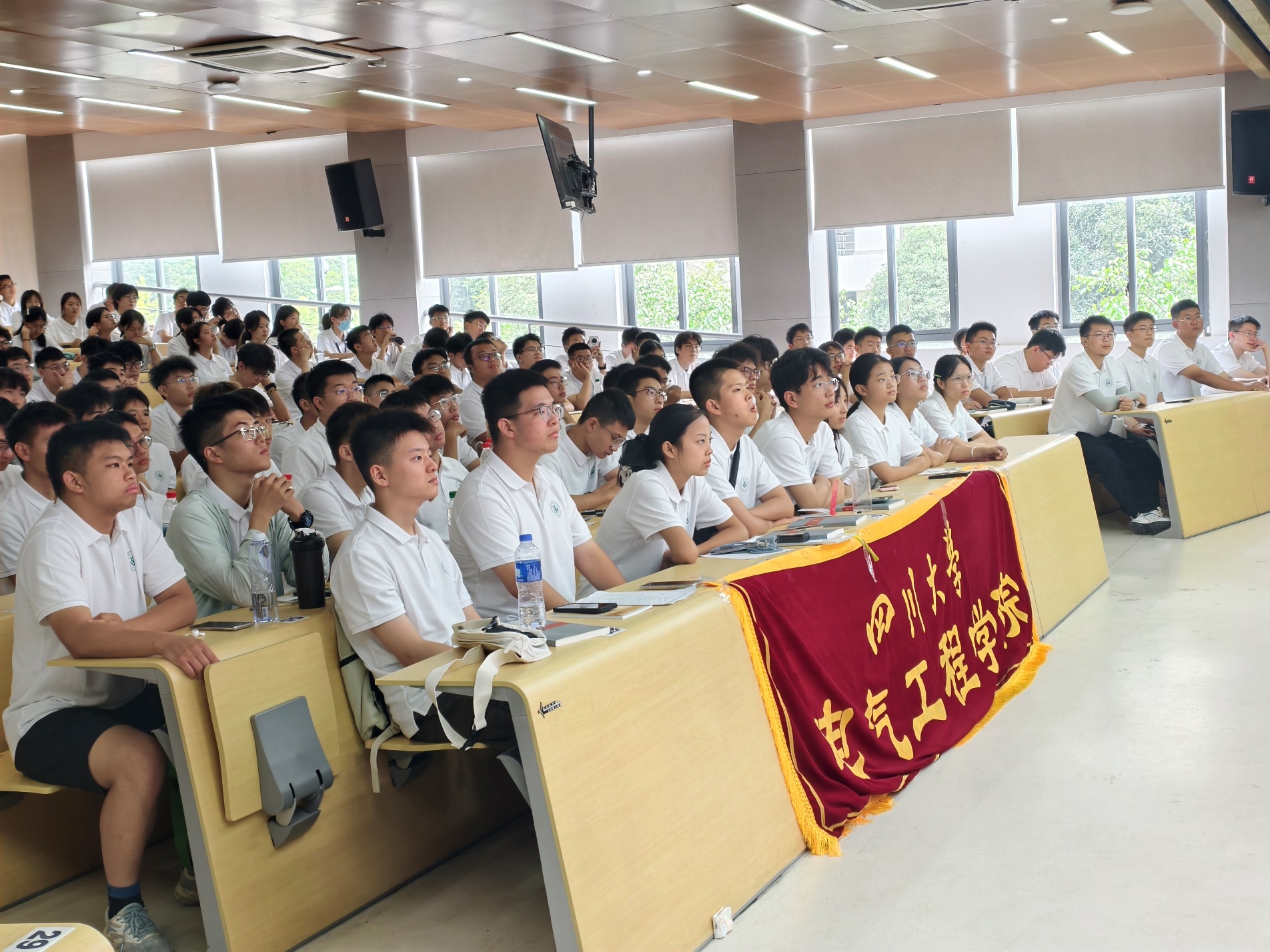 9月10日下午,学院举办“海纳百川 有容乃大”2025级新生校史文化学习主题活动,全国干部教育培训基地刘一睿老师应邀作专题报告,学院本科新生辅导员任杰、朱愉田,学校机关青年骨干兼职辅导员钟蕊霜、黄鑫、王璟玲,以及2025级全体新生共同参加学习。刘一睿老师以文翁石室的历史渊源为切入点,系统讲述了四川大学129年与党和国家发展同频共振的辉煌历程,深刻阐释了“海纳百川 有容乃大”的精神内涵。刘老师声情并茂讲授下,在场师生深受启发,增强了对学校的认同感与归属感,感受到了学校深厚的文化底蕴与校友奋发向上的精神动力。