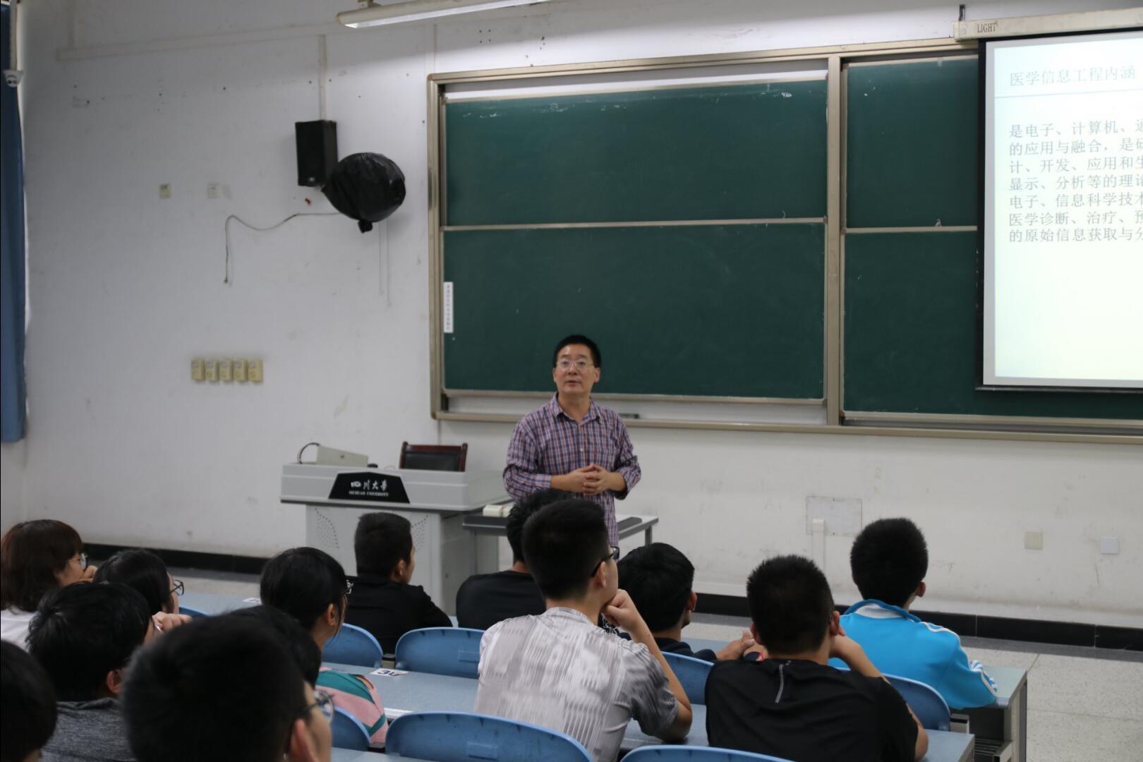 医学信息工程系主任刘奇教授向同学们介绍专业相关信息
