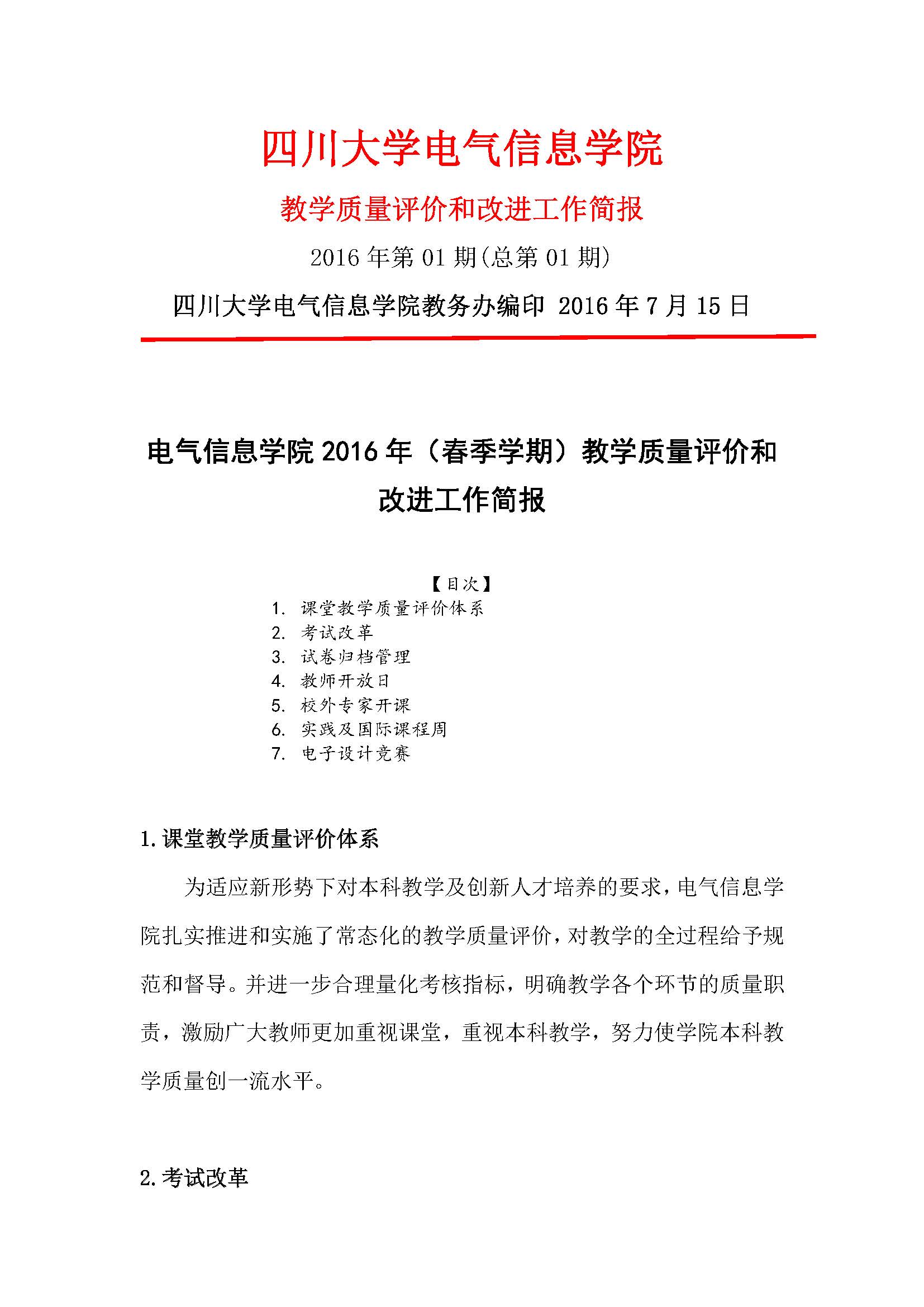 2015-2016春教学质量评价和改进工作简报