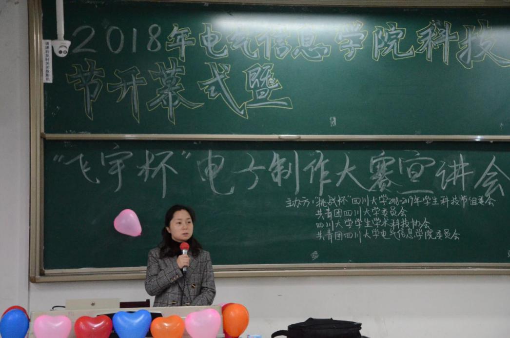 11月17日,电气信息学院科技节开幕式暨“飞宇杯”电子制作大赛宣讲会在江安校区综合楼C座207教室成功举办。电气信息学院党委副书记戴婷婷老师,教导员李小根老师,团委副书记汤博老师,2018级辅导员、分科协辅导老师卜涛老师以及各参赛组员参加本次活动。