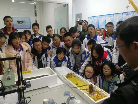 为适应当前招生宣传工作的新形势新需要,有利于社会各界尤其是广大考生进一步了解我校人才培养理念、师资水平、校园文化生活等各个方面的成就,充分展现学校办学成果、提升学校公共形象,2019年11月19日,四川大学分文理工医四个门类举行2020年度校园开放日活动,电气工程学院国家级双创示范基地作为工科类的优秀展示点之一,为广大学子提供了一个深入了解川大电气工程学院的机会。19日下午,成都七中高新校区高二年级的250名学生前来基地参观,双创示范基地副主任、毕业于英国剑桥大学、四川省人才计划入选者、博士生导师、特聘副研究员王为老师为大家做了精彩的实验展示。