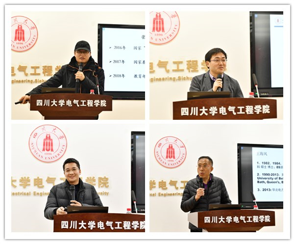 随后,数学学院连增教授、材料科学与工程学院吴家刚教授、机械工程学院余德平教授、电气工程学院王海风教授分享了各自的学术经历、回国选择川大的初衷,以及实现人生价值的实际经历与感悟,并且介绍了川大为优秀人才干事创业提供的优秀科研平台、有力的支撑条件等。