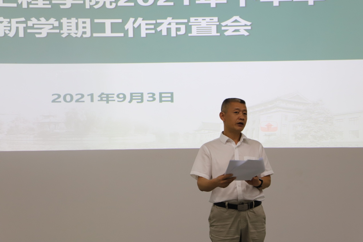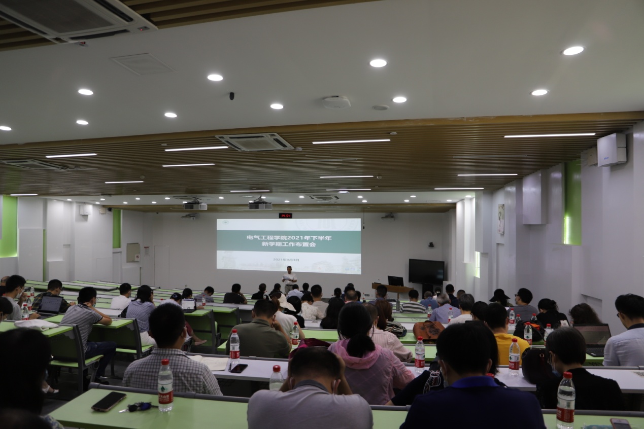 2021年9月3日下午,电气工程学院在基础教学楼C204召开2021年下半年新学期工作布置会,传达学校会议精神并部署2021年下半年新学期工作。学院全体领导班子、全体教职工参加会议,会议由学院党委书记韩芳主持。