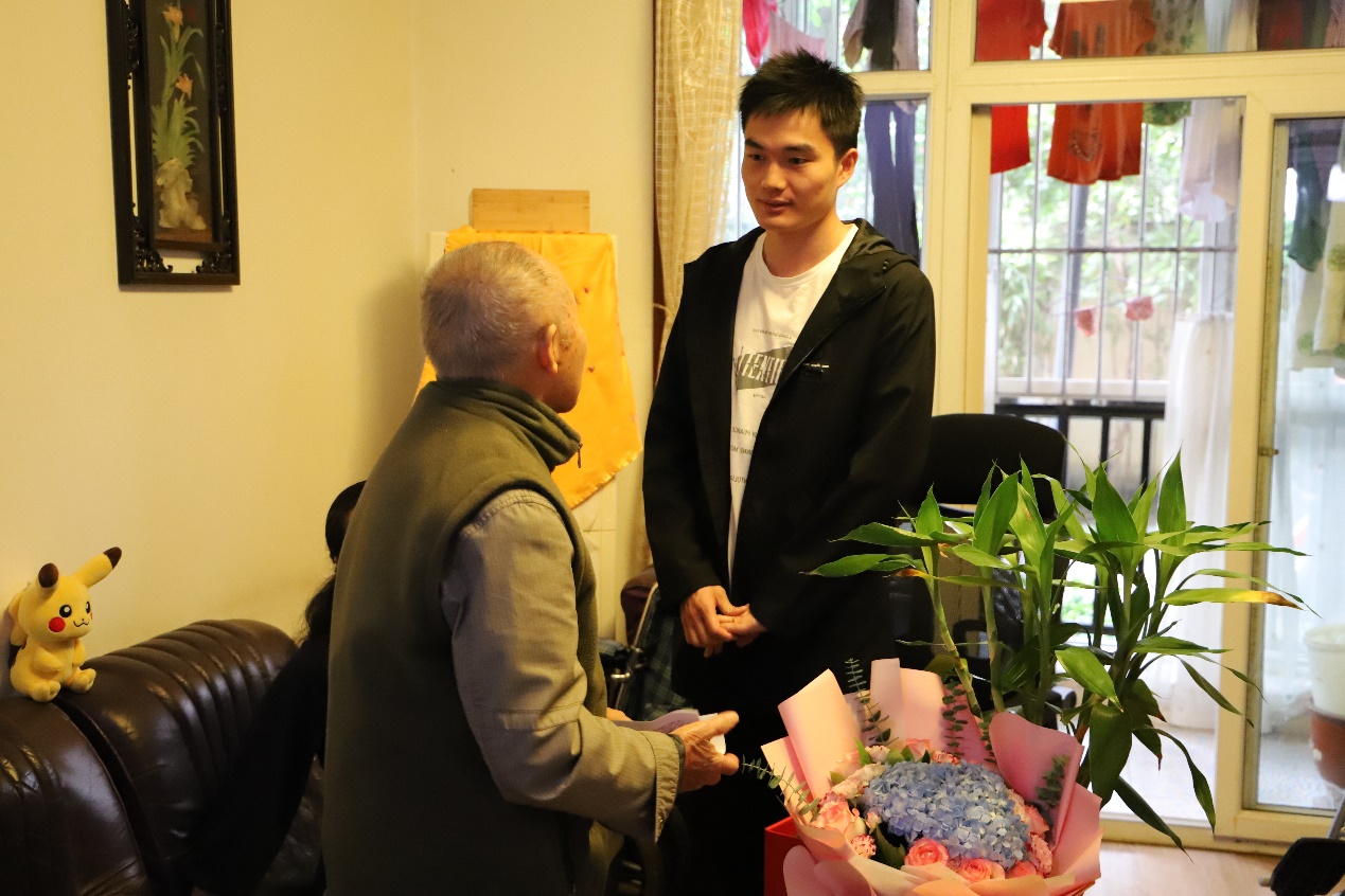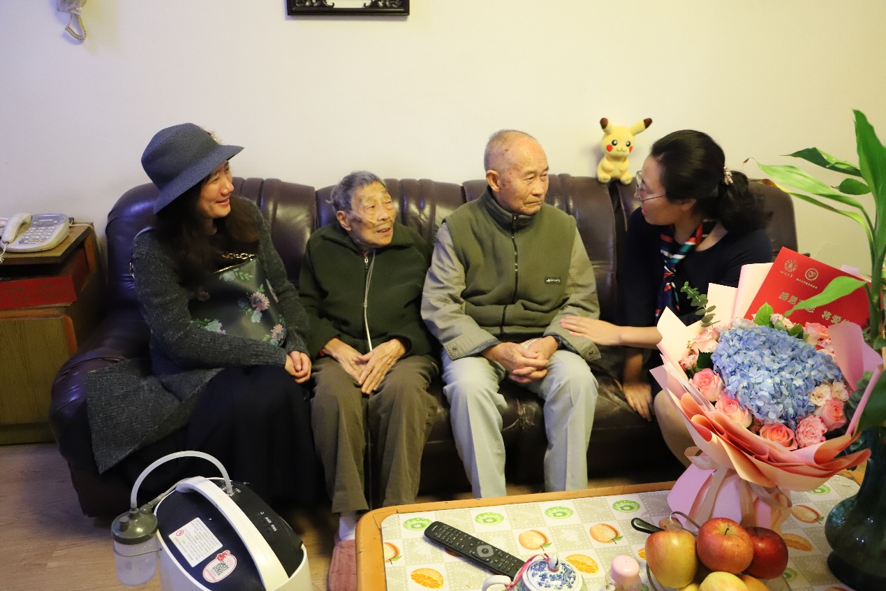 金秋逢盛世,佳节又重阳。谭业老师在2021年3月为学院捐赠了“谭业助学金”,在重阳佳节来临之际,为表达对谭业老师的感谢,10月13日,在校对外联络办公室副主任、教育基金会副秘书长贾秀娥,电气工程学院党委副书记兼纪委书记张英敏的带队下,学院教师和受助学生代表来到九旬高龄退休教师谭业老师家中进行探望,并送上诚挚的关怀和节日的祝福。