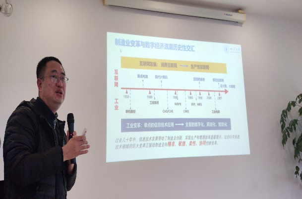 刘老师的报告介绍了企业数字化转型的背景需求,分析了我国制造业的发展现状,并提出了机械制造业数字化转型的重要举措。报告引起了现场听众的广泛兴趣,在报告后的交流环节,与会专家就报告主题开展了热情洋溢的讨论,表示出对数字经济和机械制造业的互融并进、共谋发展的热情。