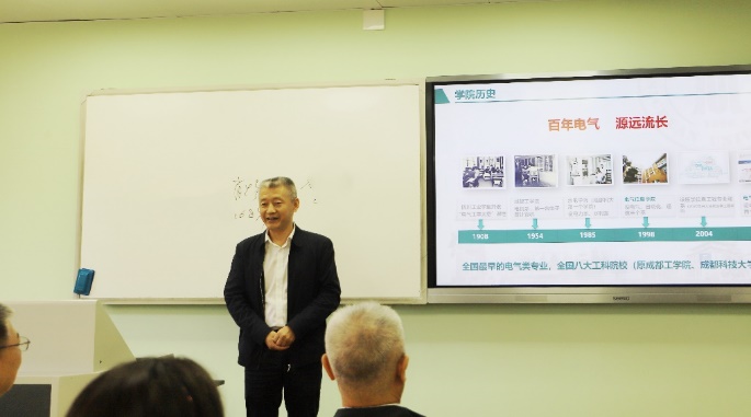肖先勇院长代表学院热烈欢迎79级学长们回家,他简要介绍了学院近年来在学科建设、科学研究、人才培养和队伍建设等方面取得的成绩。他说,正是在学院全体师生的共同努力和广大校友的大力支持下,使电气学院有了今天的快速发展。当前,学院正处在全面加快高质量内涵式发展的新阶段,希望校友们能够一如既往地关心和支持学院发展,为学院发展汇聚更多的资源。