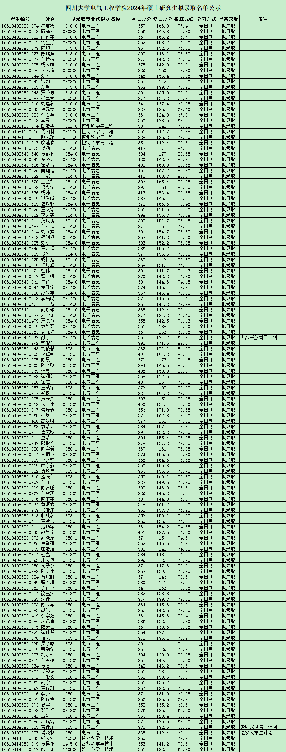 太阳成集团tyc122cc2024年硕士研究生拟录取名单公示
