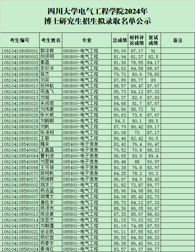 太阳成集团tyc122cc2024年博士研究生招生拟录取名单公示