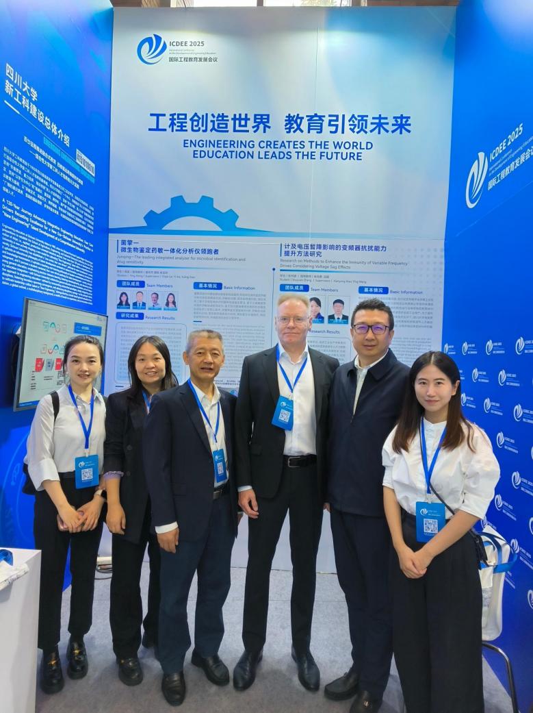 四川大学教务处副处长杨晓敏,电气工程学院院长肖先勇,副院长陈实及教师代表共同参会。会议期间,学校参加了“国际新工科教育成果展”,集中展示了在课程体系改革、科研教学协同创新、国际交流合作及学生培养等方面取得的阶段性成果,受到与会嘉宾的广泛关注与高度评价。