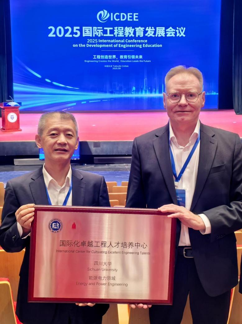 会上,电气工程学院院长肖先勇教授与Herbert Werner教授作为代表为四川大学能源电气领域“国际化卓越工程人才培养中心”揭牌。该中心由四川大学与德国克劳斯塔尔工业大学联合建设,是落实教育部“卓越工程师教育培养计划2.0”战略部署的重要举措,致力于在全球能源结构转型和“双碳”目标背景下,服务国家能源电气领域发展和高层次人才国际合作培养。中心将以国际联合培养、科研协同攻关和高水平师资互派为主要手段,构建具有全球视野、多元通融、协同创新的国际化工程人才培养体系,打造高水平工程教育合作平台。