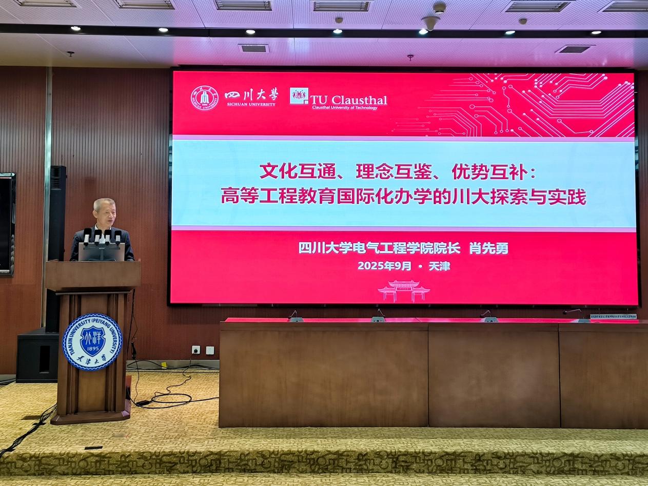9月22日,肖先勇院长受邀在“面向卓越工程人才培养的中外合作办学实践与思考”平行会议作报告,题为“文化互通、理念互鉴、优势互补:高等工程教育国际化办学的川大探索与实践”。报告围绕四川大学与德国克劳斯塔尔工业大学合作开展的电气工程及其自动化本科项目,介绍了项目建设的背景与运行情况,分享了在中德合作过程中,面对文化差异、教学体系融合和专业方向对接等挑战的解决路径,提出以文化互通为纽带、理念互鉴为策略、优势互补为基础的国际化办学思路。他表示,学院将继续拓展合作广度与深度,推动工程教育国际化不断迈向更高水平,为全球能源电气领域培养具有跨文化沟通能力与工程实践能力的卓越人才。