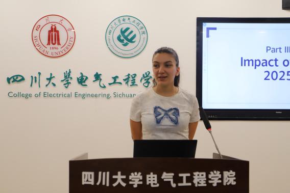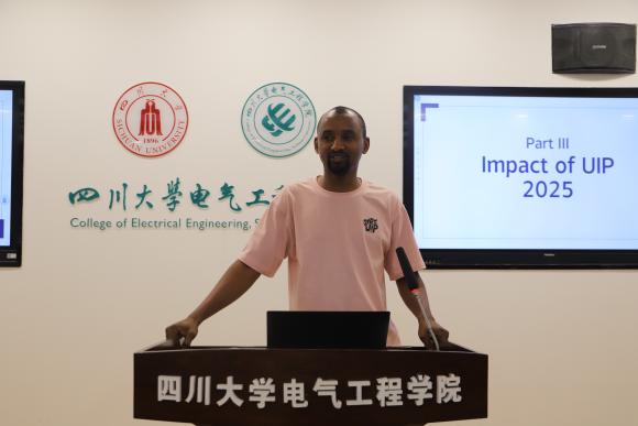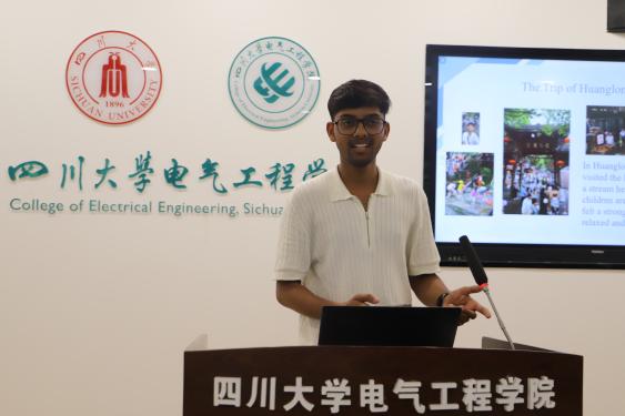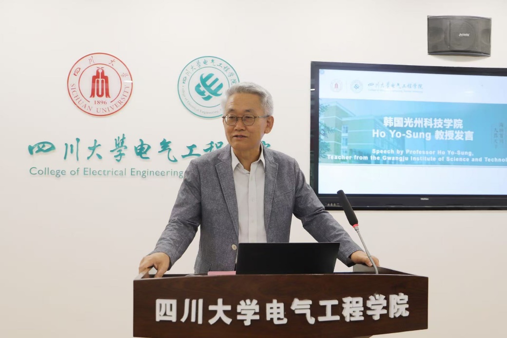 韩国光州科学技术院Ho Yongsung教授发言。他首先诚挚感谢四川大学及电气工程学院对本次跨文化交流的支持保障。提及去年参与川大国际周,那段鲜活记忆让他对其持续发展满怀期待。虽本次交流仅两周,但他深切感受到中国高等学府的影响力、巴蜀文化魅力及成都的实力。他希望青年投身国际交流,也期待两校未来开展更多合作,延续友好。
