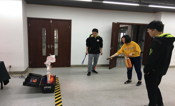 图为学生熟悉灭火器