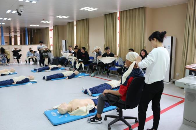 短暂的午休过后,下午的培训内容是医学急救技能,张建娜老师利用课件、视频及亲自示范等方式向学员们讲解了止血包扎法、海姆立克急救法及CPR急救法。面对医学知识储备几乎为零的学员们,张老师反复强调心肺复苏的要领、外伤止血包扎的各项技巧,运用自己丰富的实践经验为同学们提供案例,帮助大家更好的理解这些急救方法的原理。