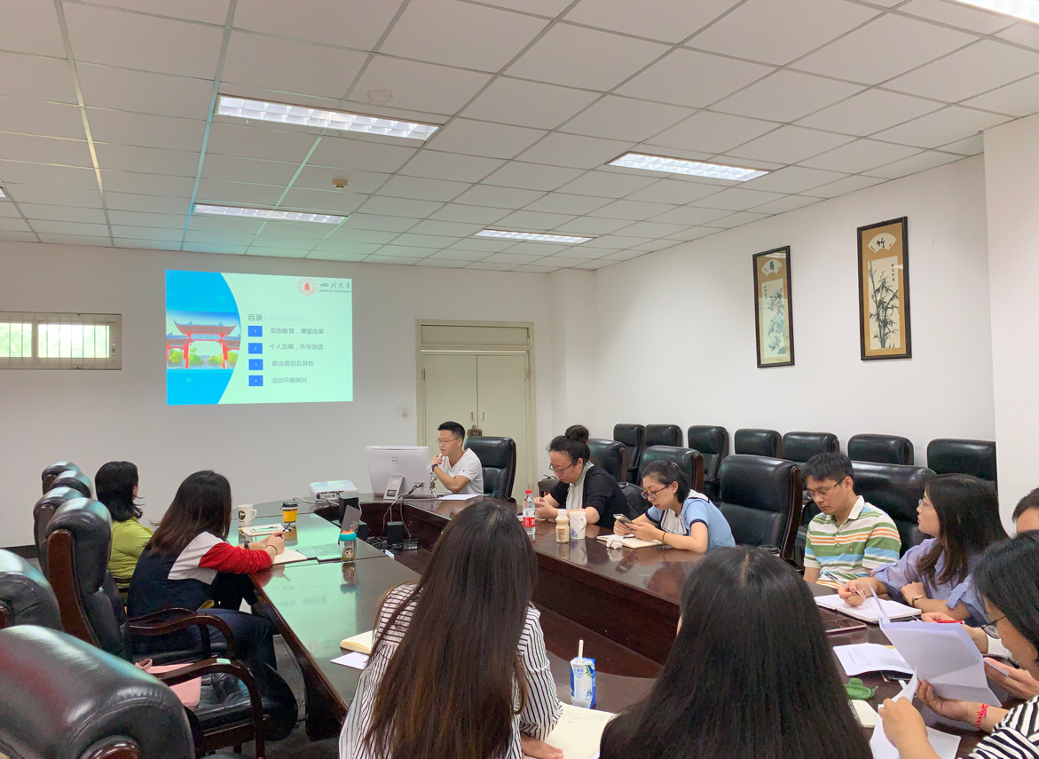 在各年级学生讨论的基础之上,5月21日上午,我院学工组在望江校区基础教学楼A220会议室召开了“新时代本科教育改革与发展大讨论之学生意见征集”汇报会。学院党委副书记戴婷婷和学生工作组专兼职辅导员参加了本次会议,会议由戴婷婷副书记主持。
