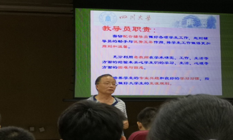 2019年9月3日,电气工程学院2019级新生校规安全教育、学业管理教育(辅导员)暨教导员见面会在江安校区第二基础实验楼B座报告厅和法学院大楼主楼报告厅顺利进行。参与本次活动的有四川大学教导员李小根老师、电气工程学院学生科长兼分团委书记汤博老师和2019级电气工程学院全体新生。