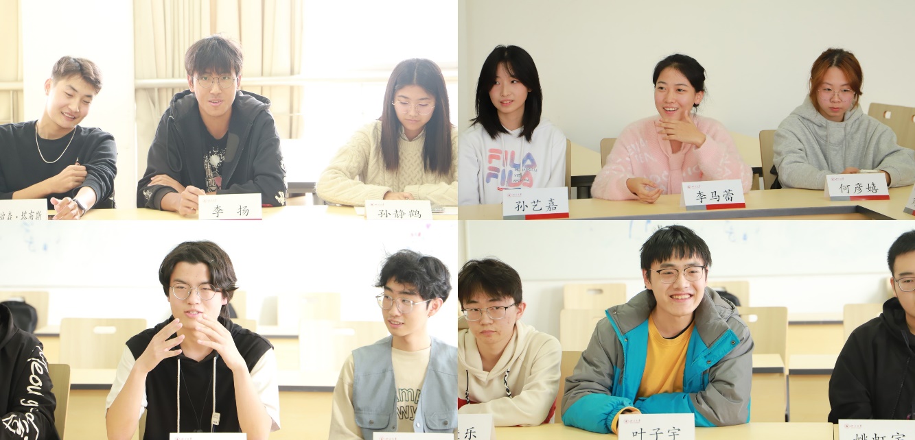 随后,参会老师与同学们进行了互动交流。针对学习和学生工作如何平衡的问题,王晓芳老师讲到,大学阶段是夯实知识基础的重要阶段,要合理分配时间,以抓好学业为本,以牢固知识体系为要。针对大寝同学间交流较少的问题,辅导员杨龙杰老师谈到,寝室文化与氛围建设十分重要,同学们可以通过更丰富的方式,增进彼此交流,深化同窗友情。针对如何拓宽视野的问题,辅导员李程老师希望同学们在大学期间利用各种机会和平台,积极争取更多开阔视野的国际交流机会。