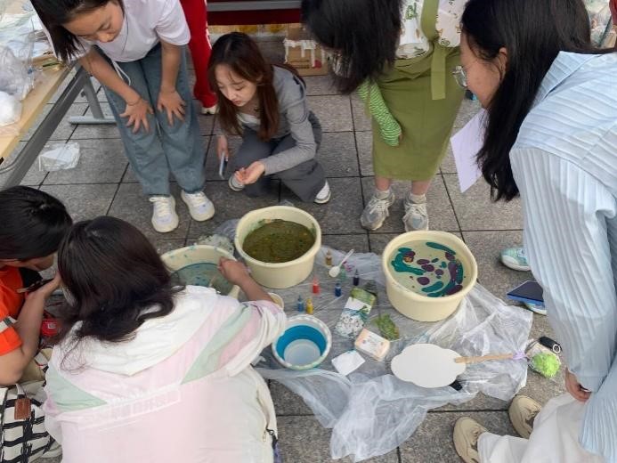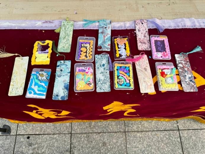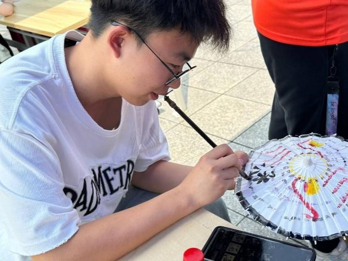 活动现场,同学们积极参与,亲手制作出许多精美作品。扇子、油纸伞、卡套,或新潮时尚,或富有传统韵味,在艺术创作中放飞青春,充分发挥创意和想象力。