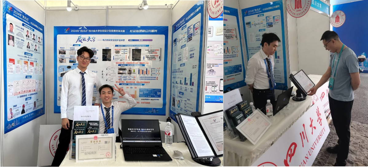 5月31日,2024年“挑战杯”四川省大学生创业计划竞赛终审决赛在内江师范学院圆满落幕。四川大学学生团队表现优异,荣获12项金奖、6项银奖和2项铜奖,金奖数量再创新高,以团体总分第一名的成绩捧得“挑战杯”。电气工程学院参加此次竞赛的学生团队中,郑子萱、任杰和胡文曦老师指导的学生团队项目“质能天穹——电力扰动安全防护金钟罩”斩获金奖;贾利川和赵莉华老师指导的学生团队项目“驭电缆材——高压电缆半导电屏蔽材料破局者”斩获银奖。