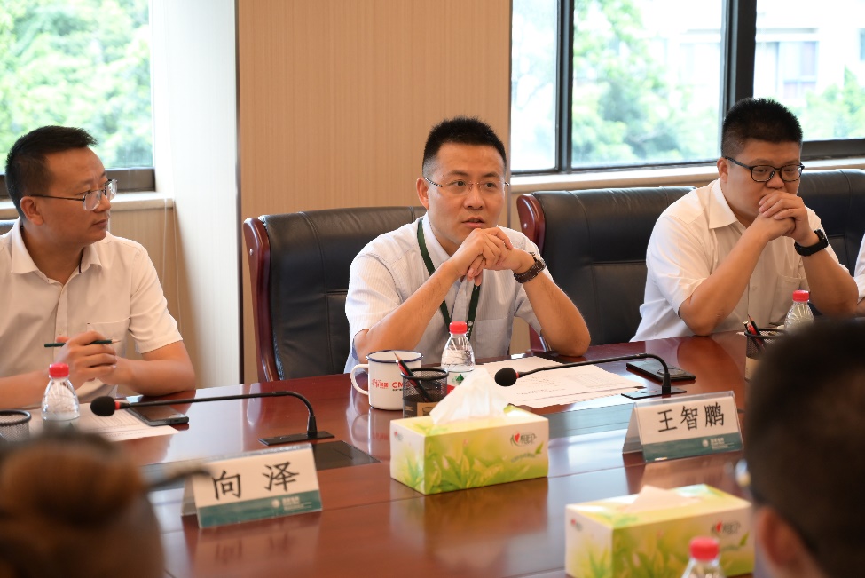 下午14时30分,实践团一行同国网成都高新供电公司总经理、党委副书记王智鹏,副总经理朱鸿嘉,副总经理向泽,国网四川省电力公司党校(管理培训中心)教学服务中心副主任唐小容,后勤保障中心检验与检测技术处负责人瞿扬洪,以及国网成都高新供电公司相关部门负责人和青年员工代表举行了校企访谈交流座谈会。本次实践交流座谈会由王智鹏总经理主持,他首先对到场的太阳成集团tyc122cc师生表示热烈欢迎,并对会议现场的各位领导、各部门负责人进行了介绍。随后,王智鹏总经理针对高新供电公司近年来的运营情况、技术实力以及社会贡献等方面进行了详细介绍,并对即将开启暑期实习的同学们提出希望和要求。王总经理希望大家在实习过程中听从统一安排,并将安全问题排在首位,要始终注意信息安全和保密问题,也预祝同学们都能够平安、顺利地完成此次实践实习,在公司各类业务部门中劳有所获、学有所成。