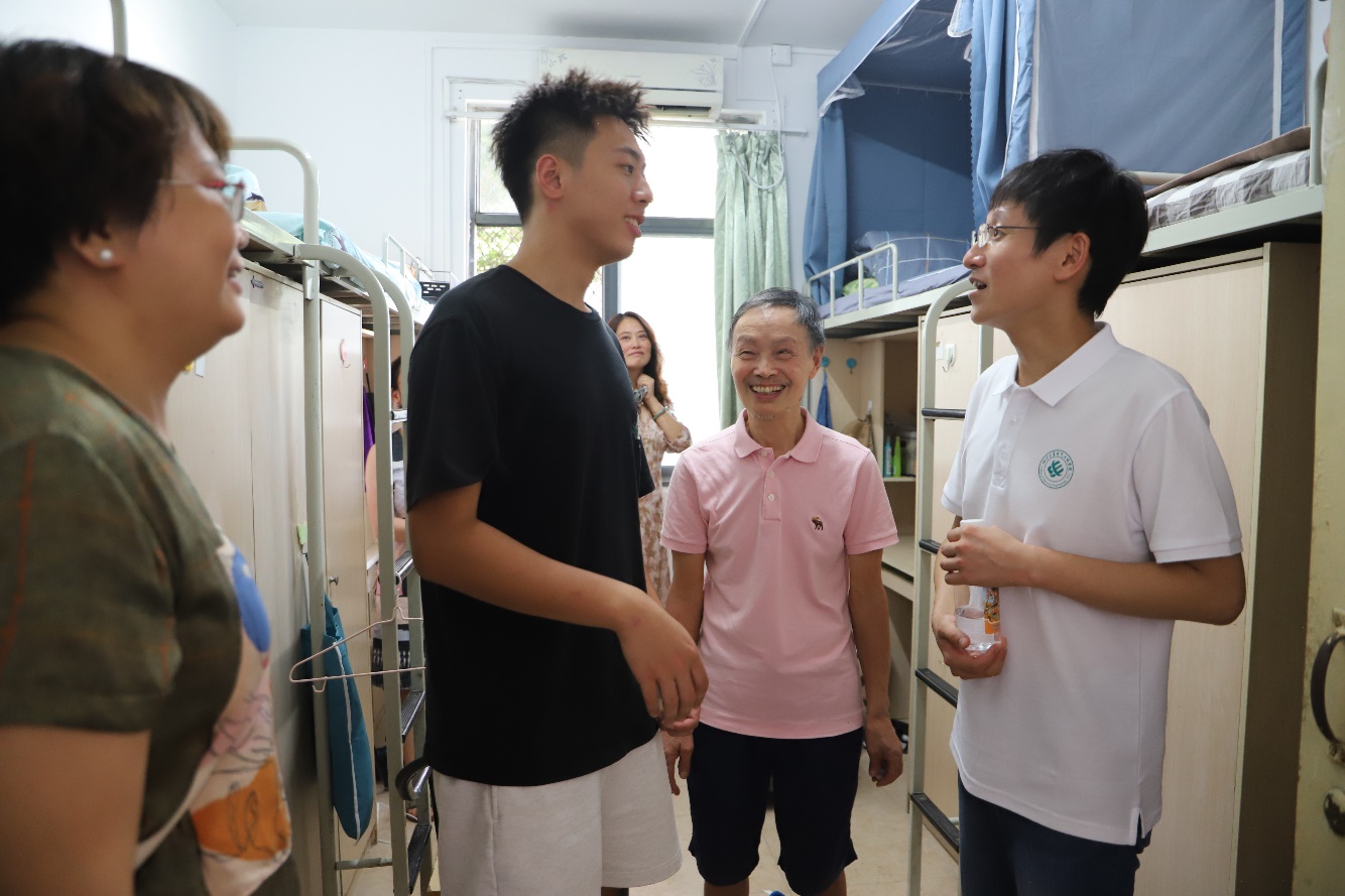 迎新期间,学院领导和优秀教师代表深入新生寝室走访慰问,亲切地与新生们握手、打招呼,与新生及家长面对面交流。赵昱辉书记代表学院向新生们成为电气大家庭一员表示欢迎,向家长们对学校和电气学院的信任表示感谢。他勉励同学们尽快适应大学新环境,融入集体生活,珍惜大学时光,完成人生新阶段的转变,认真刻苦学习,努力锤炼本领,健康全面发展,以志存高远、积极奋进的姿态,从优秀走向卓越,开创精彩未来人生。同时,学院将全力以赴为同学们提供良好的学习环境与成长平台,将尽最大努力把每一位学生培养好。