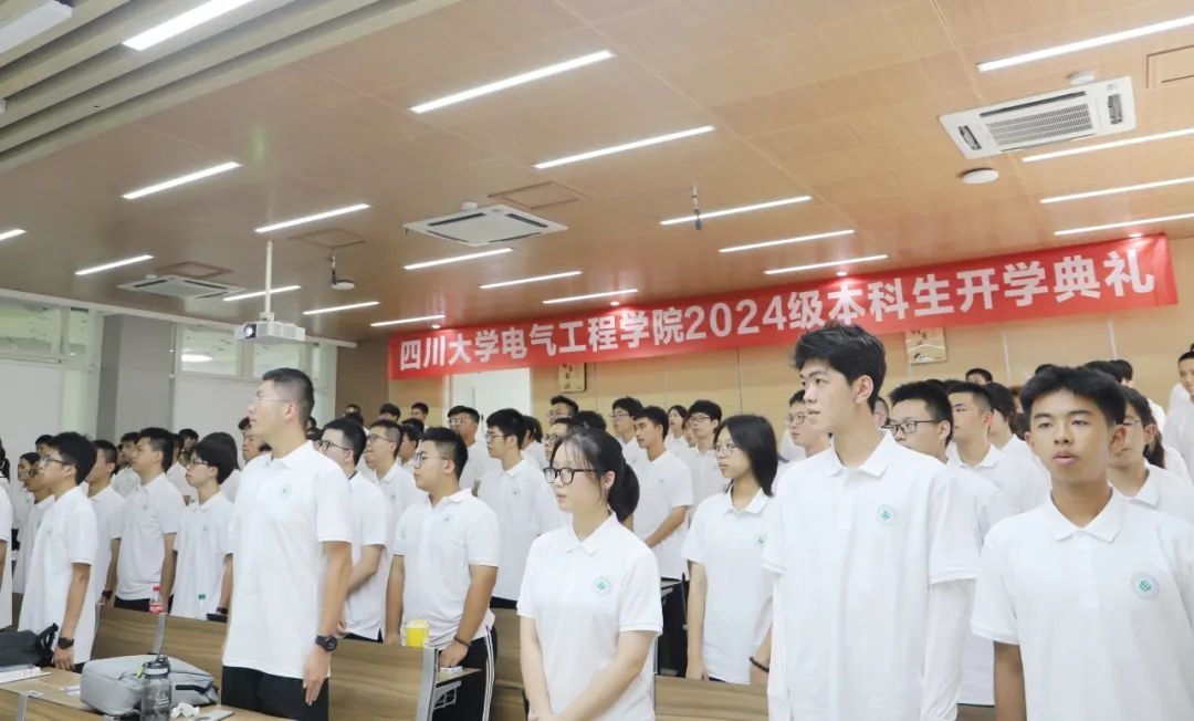 9月11日下午,电气工程学院2024级本科新生开学典礼于江安校区成功举办。学院党委书记赵昱辉、院长肖先勇,副书记、纪委书记兼工会主席张英敏、副书记戴婷婷,副院长李长松,电气工程系党支部书记、院长助理陈实,院长助理汪颖、王栋,电气工程系主任王渝红,自动化系党支部书记刘念、系主任赵涛,电工电子基础实验教学中心主任沈晓东,专业实验中心党支部书记任瑞玲出席了本次典礼。学院2024级本科生辅导员及全体546名本科新生参加了本次开学典礼。