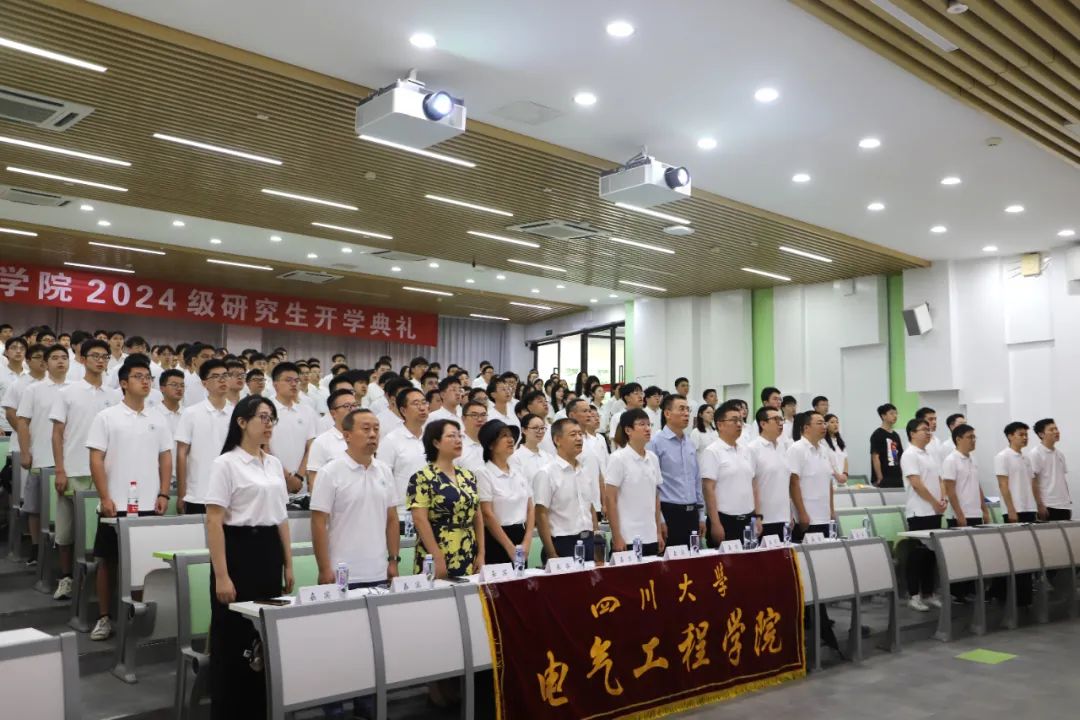 9月14日上午,电气工程学院2024级研究生新生开学典礼在望江校区隆重举行。学院党委书记赵昱辉、院长肖先勇,副书记、纪委书记兼工会主席张英敏、副书记戴婷婷,副院长周步祥、副院长李长松,电气工程系党支部书记、院长助理陈实,院长助理汪颖、王栋,电气工程系主任王渝红、电气工程系教授贾申利,自动化系党支部书记刘念、系主任赵涛,电工电子基础实验教学中心党支部书记印月、主任沈晓东,专业实验中心党支部书记任瑞玲、主任肖勇出席了本次典礼。学院2024级研究生辅导员及全体281名研究生新生参加了本次开学典礼。