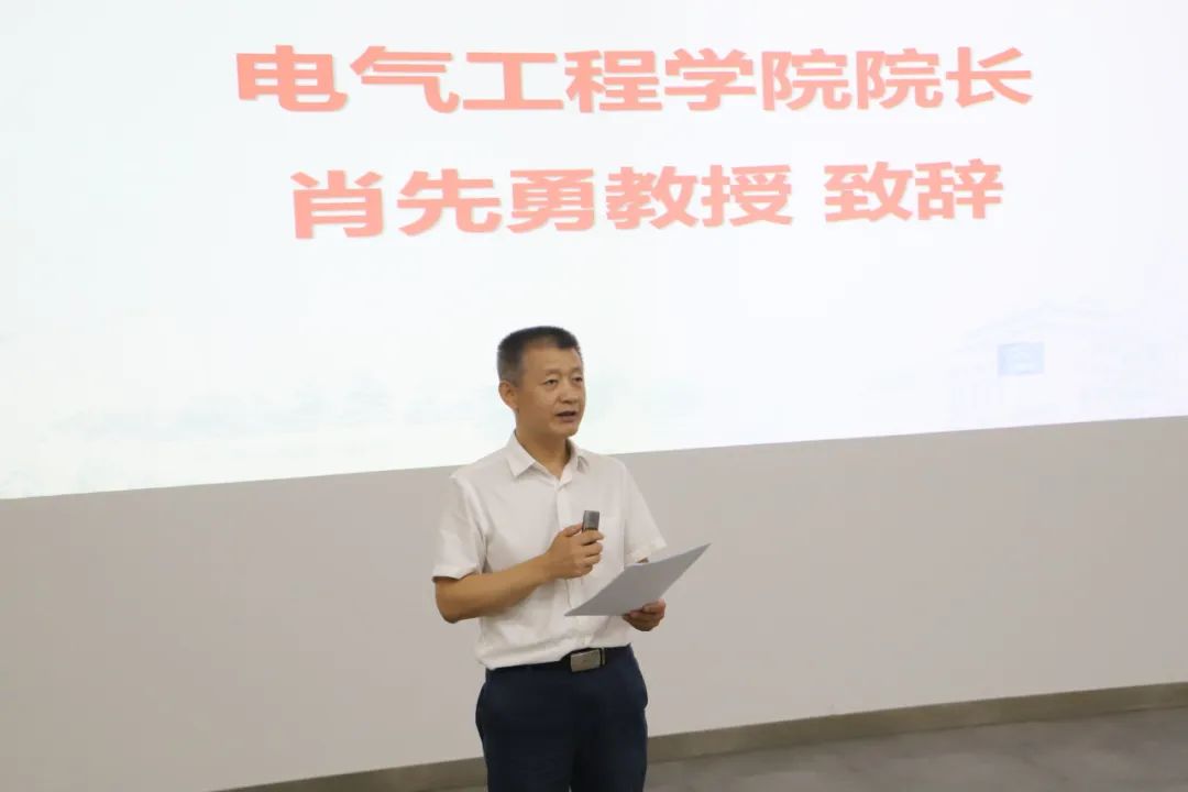 典礼上,肖先勇院长以“青春奋斗正当时,海纳百川铸大器”为题发表了热情洋溢的致辞,向全体研究生新生表达了热烈的欢迎和诚挚的祝贺。肖院长首先回顾了太阳成集团tyc122cc百余年的辉煌历史,介绍了学院在能源电力和人工智能等领域的重要地位与成就。他鼓励新生们要志存高远,勇于担当,把个人追去主动融入集体、国家的需要。同时,肖院长强调了学术精神的重要性,呼吁同学们崇尚学术、追求卓越,通过不断磨砺,练就真本领,成为引领科技创新的栋梁之才。最后肖院长鼓励同学们脚踏实地,顽强拼搏。用青春的激情和智慧谱就精彩人生,把自己磨砺成国之大者、川大电气之骄傲。