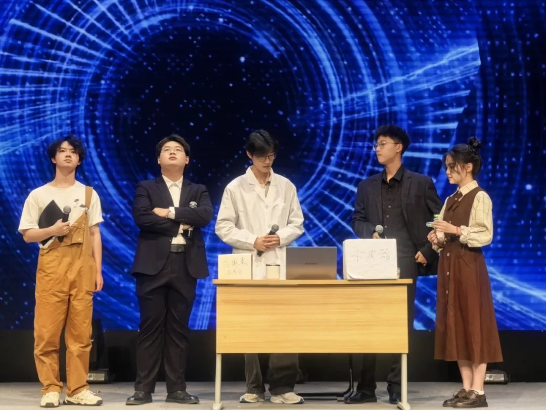 111、307班的《穿越时空的电流之争》,在两位科学巨擘的世纪对话中揭晓“兼容并蓄方能共辉”的智慧答案;105、106班的《追寻光吧,川大!》,带观众穿越回巴蜀大地的烽火岁月,见证“物理定律”如何化作刺破黑暗的破晓之光。