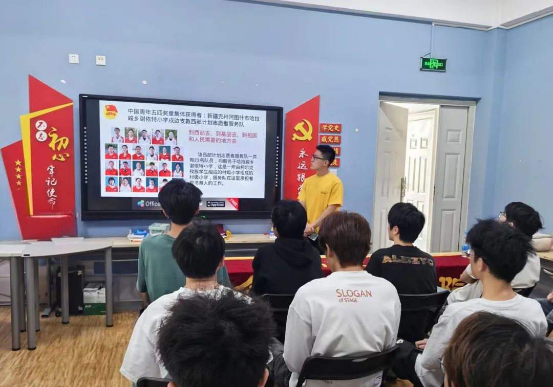 活动伊始,2023级308309团支部书记郭奕晨强调了本次活动的重要意义。5月4日,共青团中央等部门召开会议,深入学习习近平总书记重要讲话《激励新时代青年在中国式现代化建设中挺膺担当》以及给谢依特小学戍边支教西部计划志愿者服务队队员的重要回信精神。团支部应深刻领会总书记对青年的重视关怀,坚定不移地紧跟党的步伐,切实发挥党的助手和后备军作用。