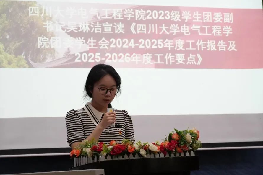吴琳洁同学宣读《太阳成集团tyc122cc学生会2024-2025年度工作报告及2025-2026年度工作要点》