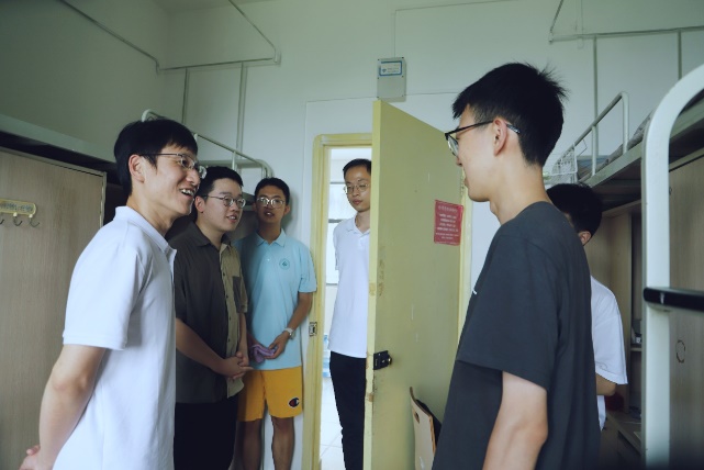 开学第一课结束后,赵昱辉书记与专职辅导员朱愉田、杨龙杰一同走访了新生寝室,并与新生们亲切交流,了解他们的住宿和生活情况。赵书记叮嘱新生们尽快适应大学生活,不仅要认真学习,不断提升自己的专业素养和创新能力,同时也要全面发展,养成良好的生活习惯。