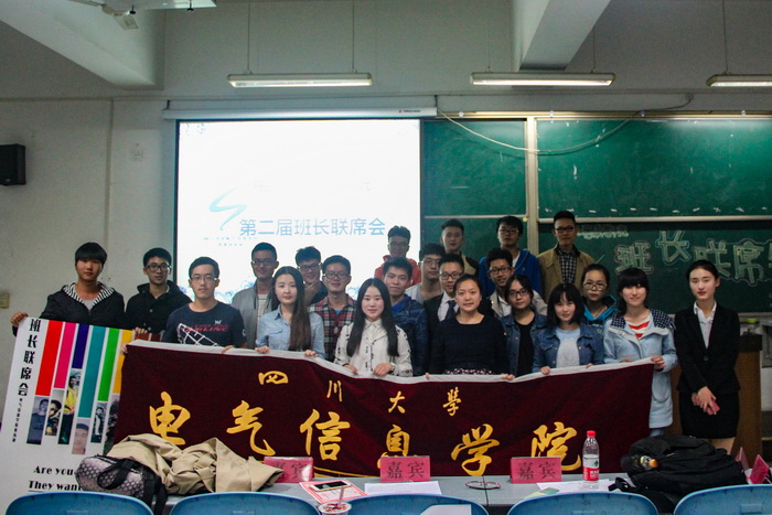 2015年10月28日晚7时,四川大学电气信息学院第二届班长联席会在江安校区综合楼C座406阶梯教室成功举行。电气信息学院团委学生会执行主席张康宁,执行副主席白健,执行副主席黄瑞杰,执行副主席郎喜文,权益部、办公室、素质拓展中心等部门部分部长、副部长,2014级优秀班长、班长委员长等嘉宾出席了本次班长联席会。部分电气信息学院同学到场参加了本次活动。