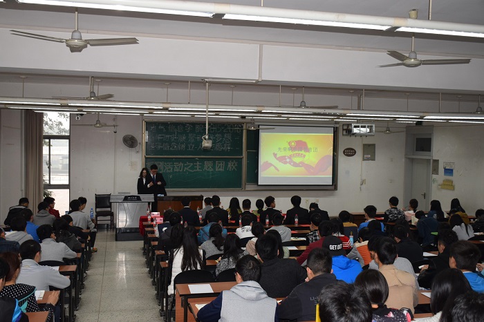 2016年3月19日,“百年历史凝聚时代梦想坚守信念树立人生榜样”系列活动之主题团校第一次行课在江安校区第一教学楼B座107教室成功举行。四川大学校团委副书记蒋莉华老师,电气信息学院团委书记戴婷婷老师,电气信息学院团委副书记汤博老师出席本次活动。到场的嘉宾还有电气信息学院团委学生会的主席团成员,各兄弟学院学生团委副书记、组织部部长,以及校团委的学生干部们。