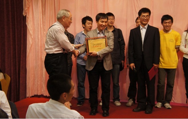 美新杯大赛全国总决赛结束宴会上工程院院士、中国工程物理研究院专委会徐志磊主任为我校颁发“优秀组织奖”
