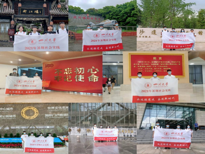 本次暑期社会实践后期为红色之旅部分。实践团队分别前往了成都规划馆、成都博物馆、金沙遗址博物馆、都江堰、安仁古镇、建川博物馆聚落、道明竹艺村等七个实践基地,通过实地考察调研,探寻巴蜀悠久文化、了解百年红色党史沿革、明晰成都未来发展规划。