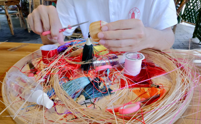 而成都市崇州的“道明竹编”,同样应该被更多人了解到并传承下去。“道明竹编”是四川省崇州市道明镇的特产,同时也是国家非物质文化遗产、国家地理标志性产品。团队在参观完道明竹艺村内的竹编博物馆后,进入了著名的“红梅体验馆”,跟随编竹的工匠,学习制作竹扇、竹铃铛等竹编工艺品,在制作过程中感受到了竹编的繁琐,在体验馆师傅的耐心指导下,成员们最终成功制作了自己的竹编手工,感受到了非遗竹编的魅力。通过与竹编匠人和竹艺村村民的交流,了解了国家非物质文化遗产“道明竹编”约4300年的漫漫历史及竹编发展现状,感受到了国家在乡村振兴与传统文化结合的探索。