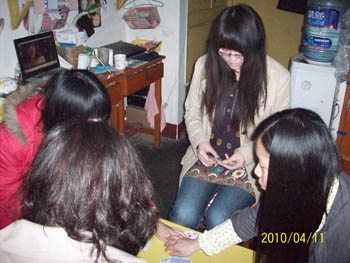 志愿者郎喜文在给同学们上语文课