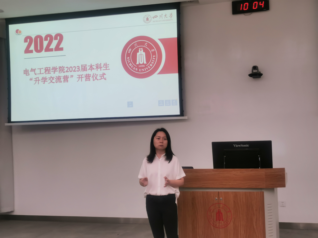2022年5月13日上午,电气工程学院2023届“升学交流营”启动仪式暨2022届升学交流营总结会在四川大学望江校区基础教学楼C202顺利举行。电气工程学院党委副书记戴婷婷老师,辅导员于孜清老师、李程老师、卢静老师,2022届升学交流营的优秀学员、小导师代表以及2023届升学交流营全体新成员参与了本次活动。
