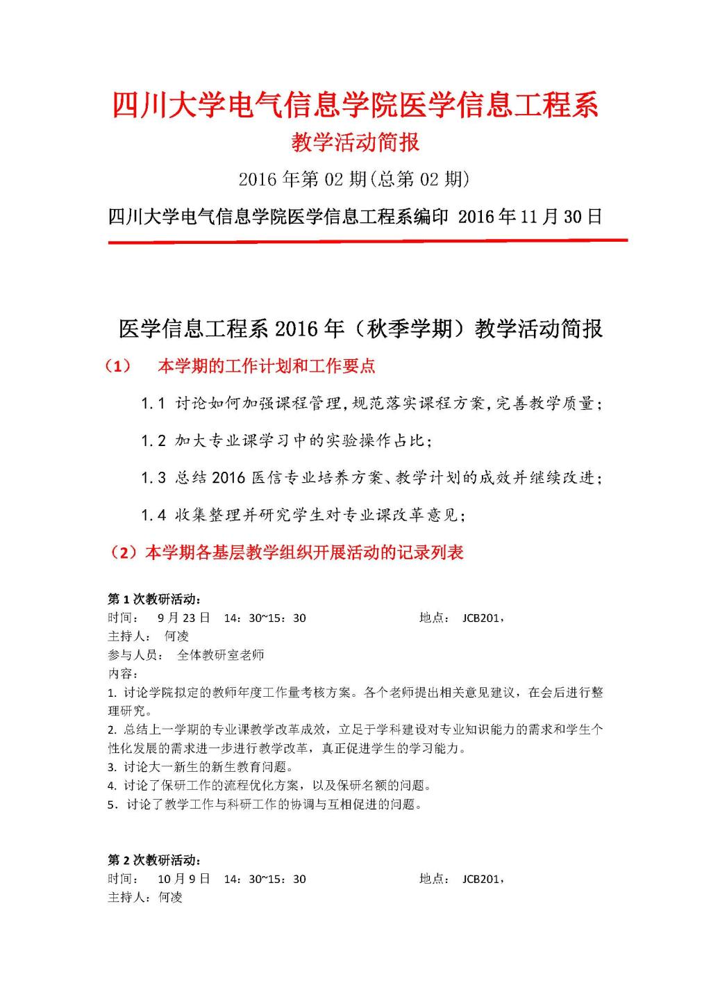 医学信息工程2016年(秋季学期)教学活动简报