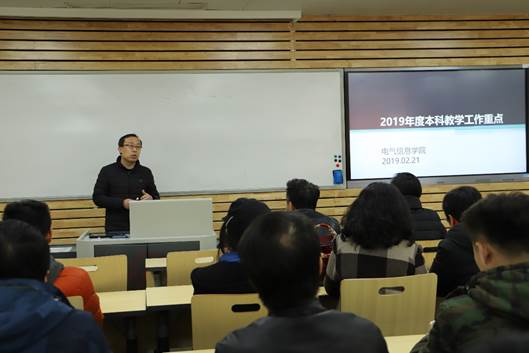 2019年2月21日,电气信息学院召开了2018-2019春季学期第0周本科教学工作会议,会议主题为“以学生发展为中心,大力推进优质教学资源建设”。