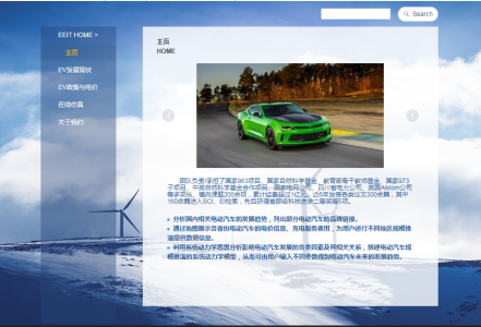 电动汽车与智能电网交互平台。此平台主要包括电动汽车(EV)发展现状、EV政策与电价、在线仿真等内容。