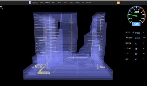 智能建筑软件系统。该系统主要完成可视化的设备状态信息监控,可显示电气接线图(可显示潮流、负载以及分类用电),网络拓扑,也可实现用户用电量统计、损耗分析计算等功能。